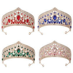 Groothandel Elegante Luxe Dames Tiara Kronen Nieuwe Hoofdband Hoofdband Hoofdstukken Rood Navy Lila Groen Roze Verguld Kristal Voor Meisjes