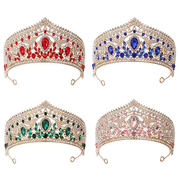 Groothandel Nieuwe Elegante Luxe Bruiloft Tiara Kronen Rood Blauw Lila Paarse Bruids Miss Europa Kronen Voor Bruiloft Meisje