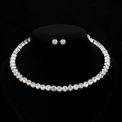 Sıcak satış basit ve zarif pirinç Rhinestone takı seti güzel bayan parti kolye & küpe klasik tarzı